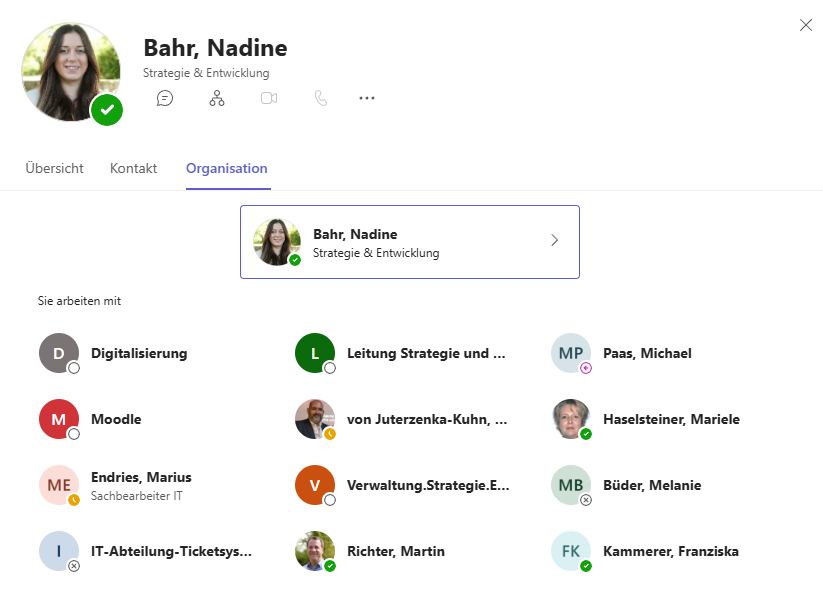 Vielleicht ist Ihnen aufgefallen, dass, wenn man auf Teams ein Profil öffnet und neben Übersicht und Kontakt auf Organisation klickt, eine Organisationsstruktur geöffnet wird.